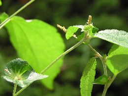 【左】エノキグサの花です。電灯照明が発達する前は、灯台が使われていました。この花の様子が灯台に似ているところから付けられたそうです。