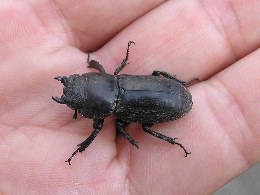 【右】コクワのお母さんがアスファルトの上を散歩していました。どこから来たのでしょう。