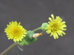 【左】オニタビラコの花です。造成地などの荒れ地、公園や林縁などに生育します。