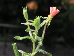 【中】コマツヨイグサは北米原産の帰化植物で、秋に芽生え、春から黄色い花を咲かせます。荒れ地、河原、海岸の砂浜など乾燥したところでよく見られます。