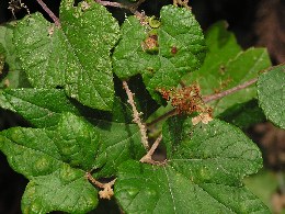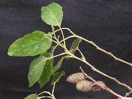 【中】ハンノキに今年できた果実と来年の花芽が付いています。