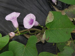 【左】サツマイモの花です。ヒルガオの仲間であることが分かります。