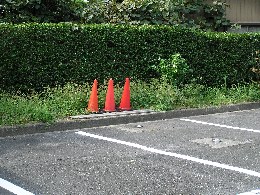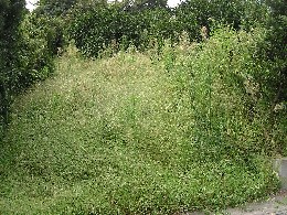 【左】図書館前の花壇です。日当たりを好むメヒシバが繁茂していました。<BR> 【中】図書館の駐車場の南の花壇です。1年位放置したものと思われます。20種類くらいの雑草が見られました。
