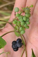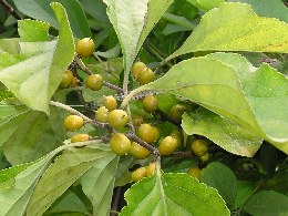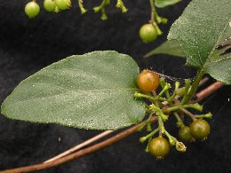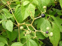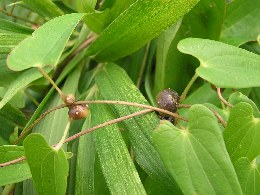 【左】ツヅラフジの多肉果とその中の種子です。種子の形がアンモナイトに似ています。