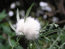 【中】ヨモギクキワタフシです。ヨモギワタタマバエが寄生して綿のようになった虫こぶです。