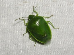 【右】ツヤアオカメムシ。ミカンやカキなどに付きます。