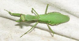 【右】ハラビロカマキリが灯火採集の仕掛けちかくにいました。