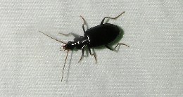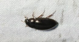 【右】水生昆虫のヒメガムシです。明かりによく来ます。