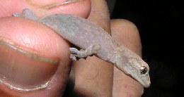 【左】ヤモリが遊歩道を散歩していました。みなさん、足の吸盤に触ってみました。