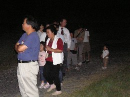 【左】耳を澄ましながらナイトハイクです。