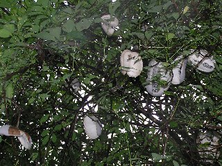 中部電力の工場の東にある緑地帯とビオトープを見学しました。植栽されて40年以上経過した緑地帯は立派な森になっていました。だだし、植栽されている樹種の一部が外来植物であるため、森の形成上問題があるみたいです。例をあげれば@トウカエデの森が形成されていた。Aフサアカシアが高木となり、一部、上部が風で折れていた。Bトウネズミモチが大量の種子を付け、それを小鳥が食べてばら撒かれて各所で発芽するのが見られた。C植栽されたモウソウチクが繁茂し、生長した樹木の中に進入し、樹木を枯らしていた。知多地方の山で普遍的に見られるカクレミノ、ヤツデ、ヒサカキ、モチノキ、サカキ、クロバイなどが見られないのは残念でした。