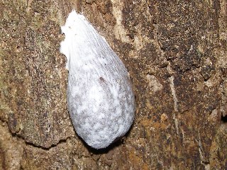 【右】マンジュウホコリという変形菌の仲間です。コナラに生えていました。
