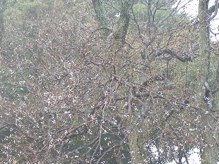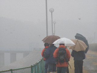 【中】傘をさして近づいたら、カワウが飛び立ちました。