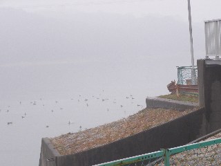 【右】佐布里池にたくさんの水鳥が飛来していました。