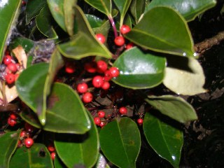 【左】鳥はおいしい実から食べるみたいでクロガネモチの実はたくさん残っていました。