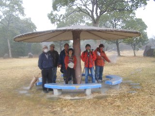 【右】傘?、キノコ?の休憩所で一休み、結構たくさんの鳥を見ることができました。