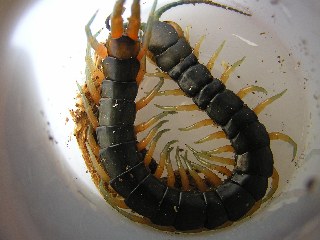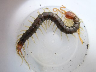 【右】こちらはトビズムカデです。アオもトビも大ムカデの仲間で毒が強いから注意しましょう。