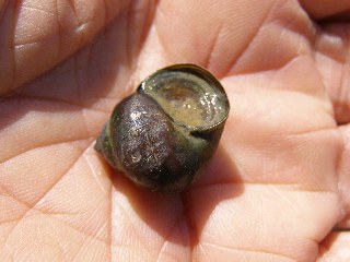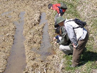 【右】タニシを発見しました。最近、農薬の影響が無い湧き水がある水田で見かけます。