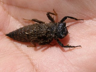 【左】湧き水が流れ出ているところにオニヤンマのヤゴがいました。
