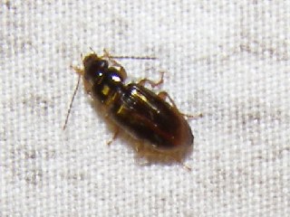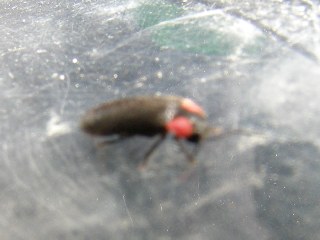 【左】森のナイトハイクの常連のユミアシゴミムシダマシです。