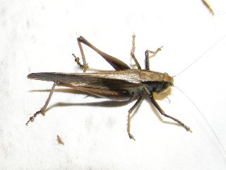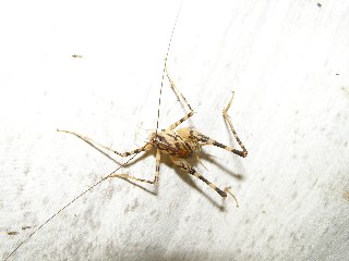【右】マダラカマドウマ?。夜行性で穴にまとまって生活している。