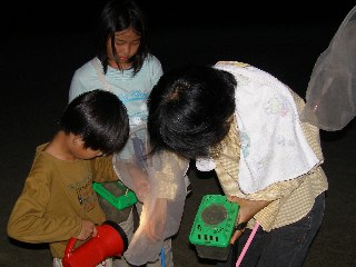 【左】水銀灯に虫さんがたくさん集まってきました。