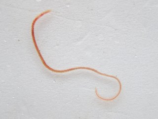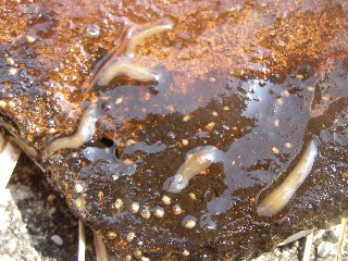 【中】汚い泥が集まったところに水質階級W・大変汚い水の生き物となっているエラミミズ見られました。