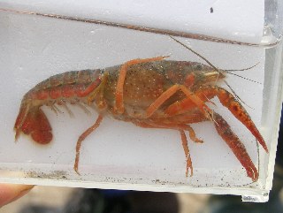 【右】おなじみの外来種のアメリカザリガニです。水質階級W・大変汚い水の生き物となっています。