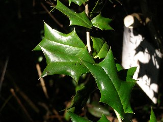 【右】セイヨウヒイラギ(モチノキ科)。ヒイラギはモクセイ科です。