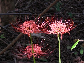 【中】森の中のわずかな光の中でヒガンバナが咲いていました。