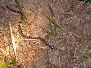【右】夜活動するシロマダラヘビです。各地に生息していますが偶然出会うことが出来ました。