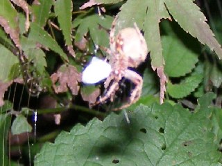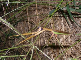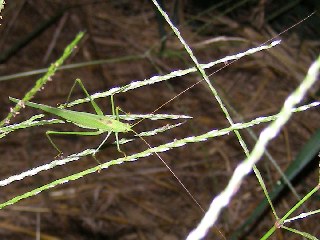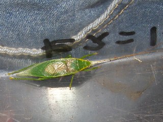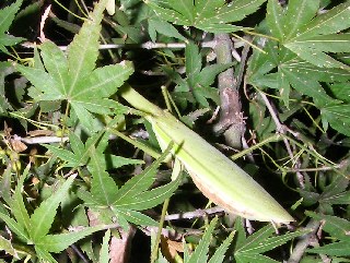 【右】アオマツムシが梅の葉で鳴いているのを見つけました。