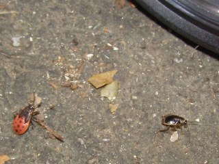 【左】(左)カメムシの幼虫、(右)モリチャバネゴキブリ。