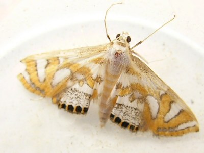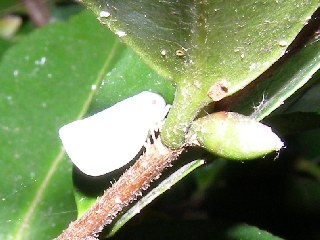 【右】ヒサカキにホタルガが止まっていました。食草はヒサカキです。葉の白いクネクネの線は、ハモグリバエ(ジカキムシ)の仕業です。
