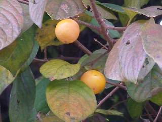 【左】アカノマンマ(赤飯)としてままごと遊びに使われた植物です。 【右】ヤマガキ。柿の原種で接木の台木にされます。