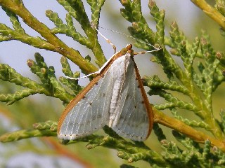 【右】イブキでマエアカスカシノメイガが休んでいました。