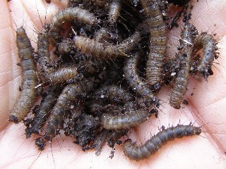 【左】ケバエの幼虫が何箇所か群れていました。