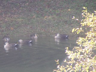 【右】佐布里池の対岸にカルガモの集団がいました。