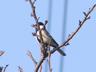 【右】シジュウカラがサクラの枝から見下ろしていました。