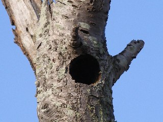 【左】キツツキの空けた穴。