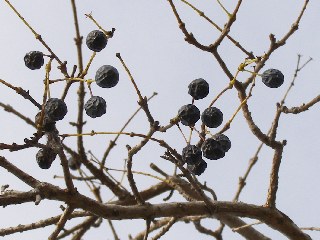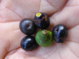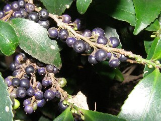 【左】ナンジャモンジャ(ヒトツバタゴ)の黒い果実。