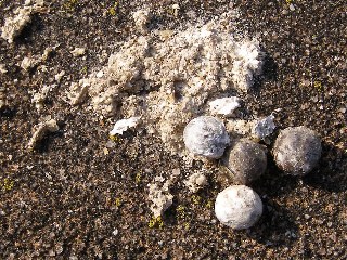 【中】ヒヨドリとキジバトが落としたクスの果実。