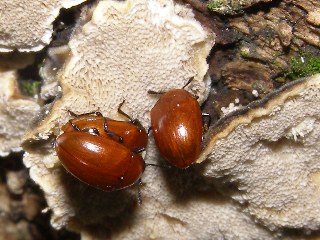 【中】アカハバビロオオキノコムシ。キノコはカワラタケです。