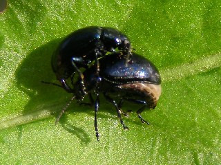 【右】ヨモギハムシの恋路を邪魔してしまいました。