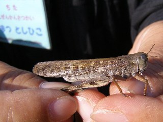 【中】トノサマバッタを上から見たところです。