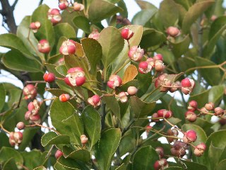 【左】メジロが食べた後のマサキの実。 【右】ヤマガラが群れで来てました。