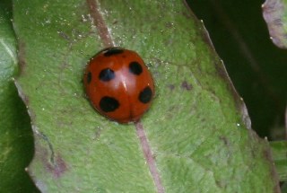 【中】ナナホシテントウが日向ぼっこをしていました。