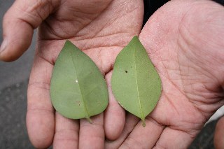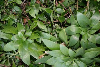 【右】大きい葉がユリズイセン。小さい葉がノハカタカラクサ。野生化していました。