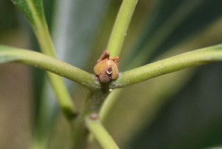【中】ミミズバイの芽。ミミズの頭に似ているでしょうか。