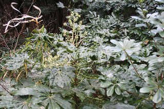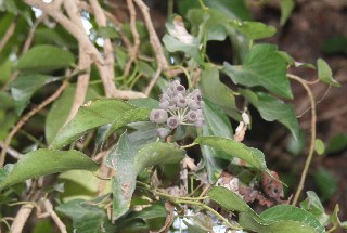 【右】初冬に花が咲き実を付けたフユヅタ。